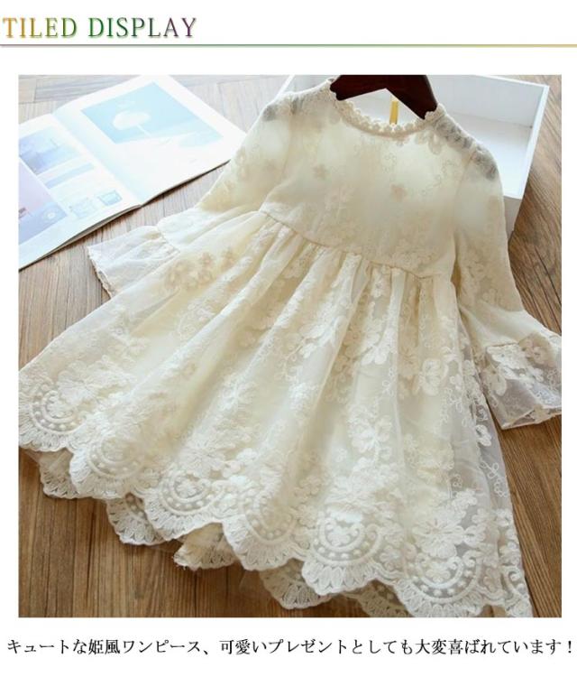 | エレガントな総レースのワンピースです。 キュートな姫風ワンピース、可愛いプレゼントとしても大変喜ばれています! 入園、入学はもちろん結婚式や発表会にも似合う、おしゃれで可愛いキッズ服。 上品で愛らしいデザインは、会場のみんなから愛されること間違いなし。 発表会や七五三などの女の子のフォーマルシーンにおすすめ。 | |
