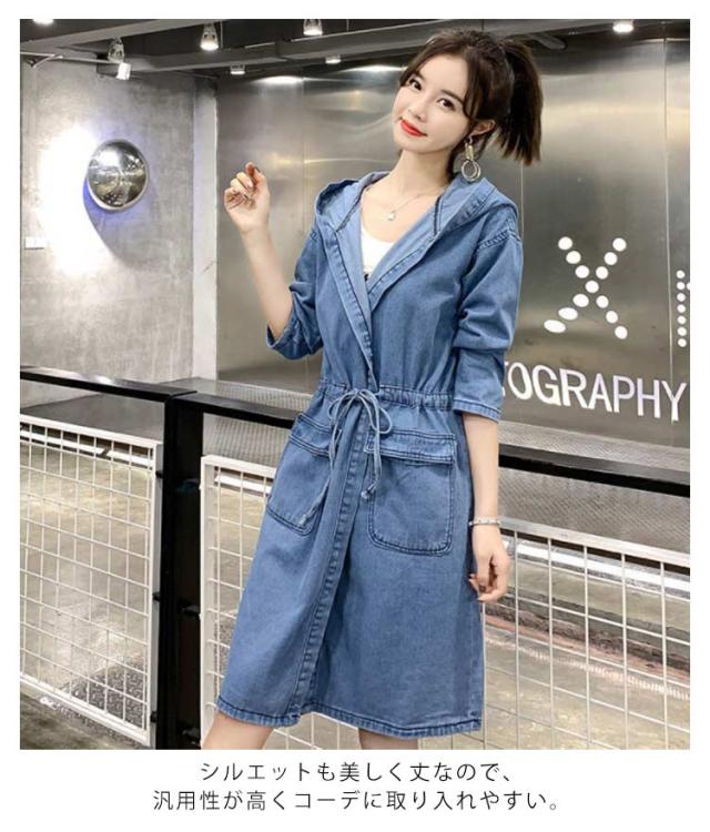 ロング丈 Gジャン ロングコート ジャケット レディース アウター デニム フード付き 3XL デニムジャケット ジージャン ゆったり カジュアル 上品 大きいサイズ M L XL 2XL ジャケット