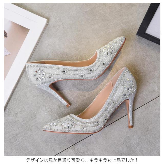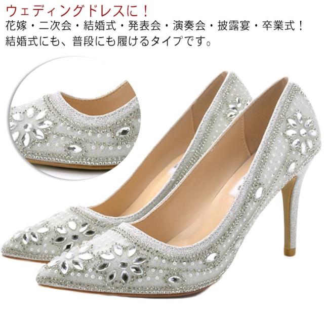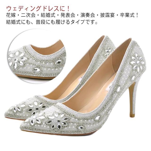 結婚式 シューズ ウエディングシューズ パンプス ブライダル レディース靴 大きいサイズ ブライダル 花嫁 二次会 フォーマルパンプス 発表会 演奏会 パーティーパンプス シルバー ハイヒール ドレスシューズ ウェディング