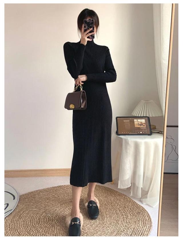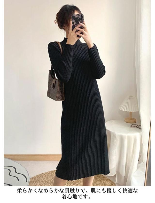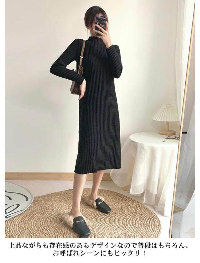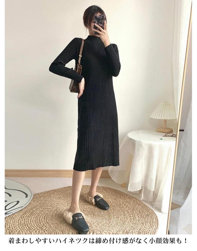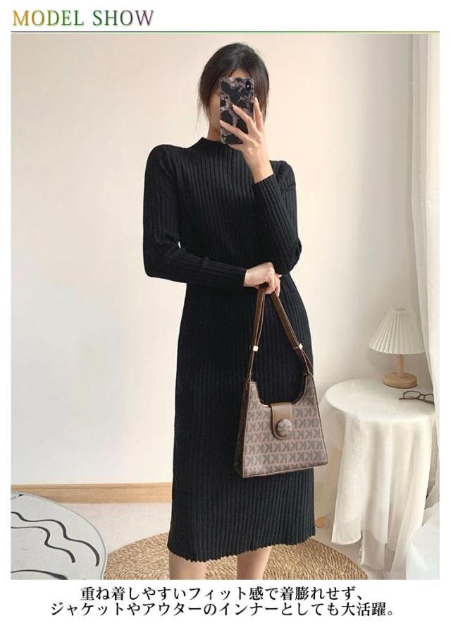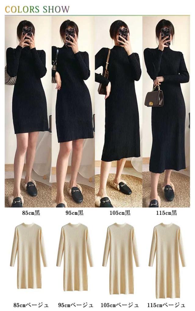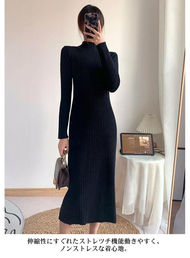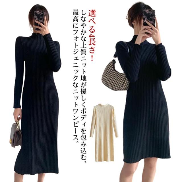 タイトワンピース ロング丈 大人 おしゃれ ロングワンピース ミニ丈 ショット丈 ニット ミモレ丈 ニットワンピース 選べる丈 ワンピース 長袖 春 XL 冬 ハイネック フェミニン 着痩せ ストレッチ S M L 秋