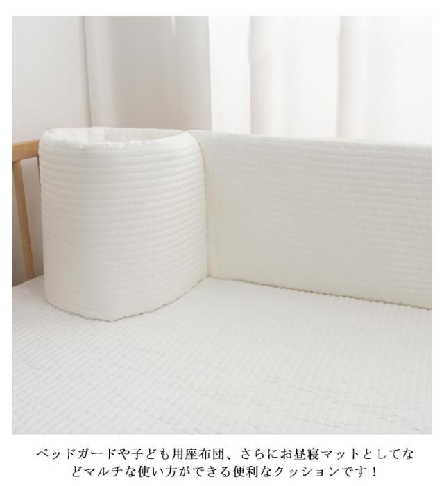| ベッドの柵に頭や手足をぶつけないように保護できるベビーベッドガード エアコンの風が直接当たらないように防ぐことができます。 カバーはやわらかくてふんわりサラッとした肌触りの綿カーゼを採用。 シンプルなプリントと優しい風合いが赤ちゃんをやさしく包みます。 ベッドへの設置は紐で留めるだけ 厚みのある柔らかウレタンを使用しているので、ベッドへのごっつんをやさしくガードします。 カバーを外して洗いOKなので汚れても安心。 ペッドガードや子ども用座布団、さらにお昼寝マットとしてなどマルチな使い方ができる便利なクッションです! | |