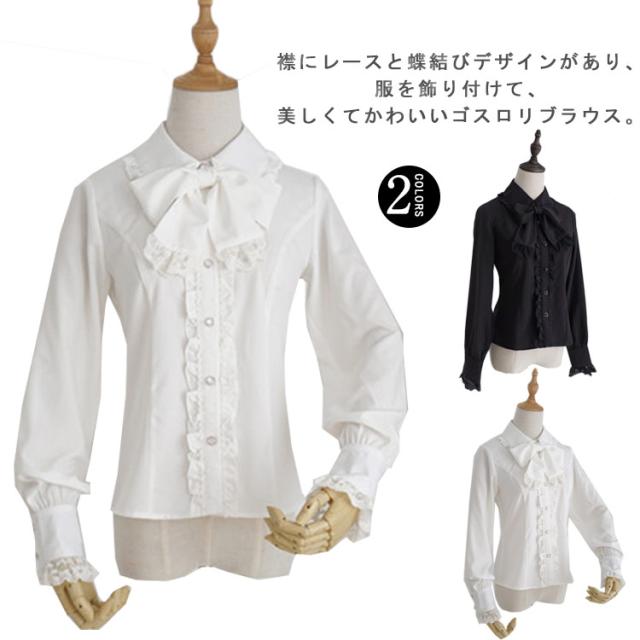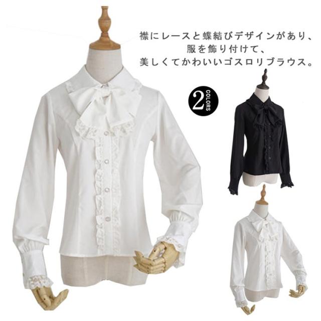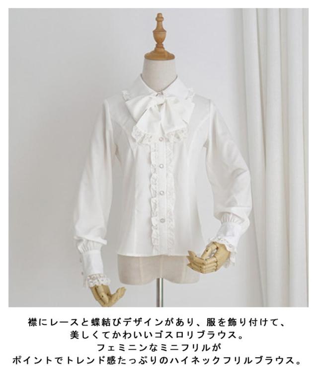 ゴスロリ 送料無料 姫袖 ブラウス シフォンシャツ ロリータ フリルブラウス 立ち襟 レディース シャツ ゴスロリ ロマンティック リボン付きブラウス ブラウス レース フォーマル ロリータ lolita 刺繍 レディース トップス シャツ 長袖