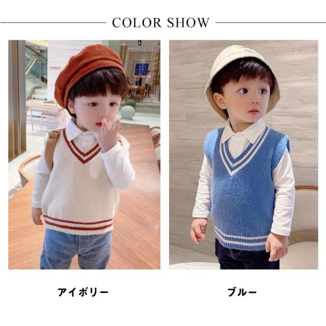 保育園 トップス 女の子 子供服 ライン プルオーバー 配色 赤ちゃん 男の子 ニットベスト ニット ベスト スクールベスト 【送料無料】キッズ ベビー服 通園 120 入園 小学生 80 90 100 110 Vネック