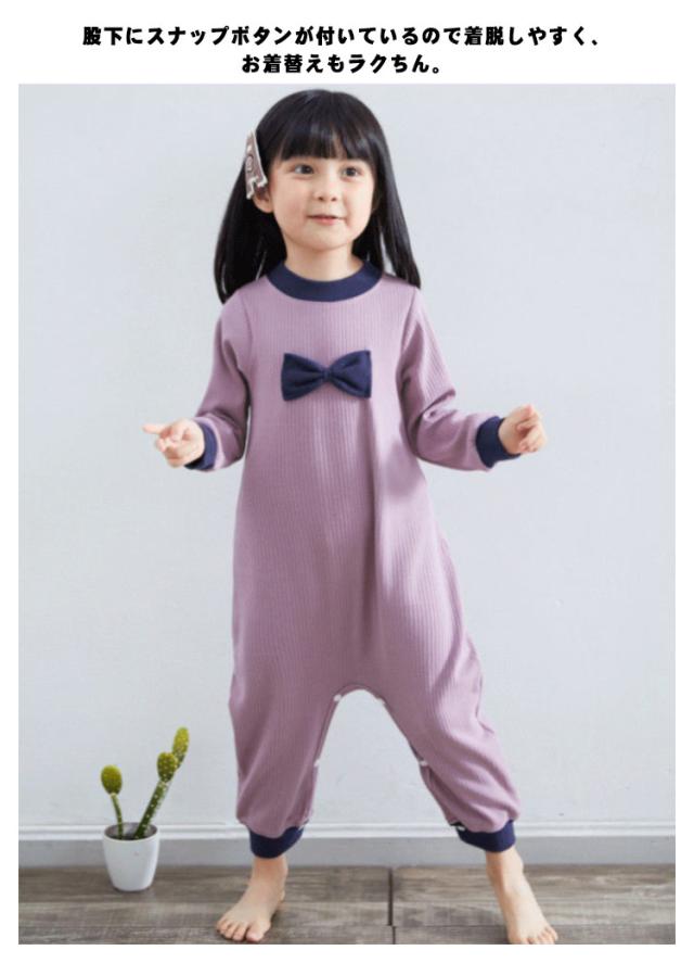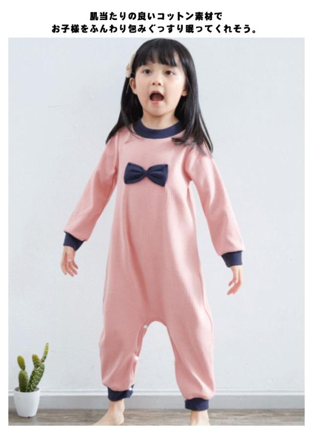 カバーオール 綿 長袖 パジャマ パジャマ パジャマ オールインワン ルームウェア 無地 子供用 おしゃれ 女の子 子供パジャマ 子供服 ロンパース 部屋着 ナイトウエア ベビー ジュニア 寝間着 寝冷え防止 女の子 かわいい リボン つなぎ 春 春用 秋 90 100 120 キッズ