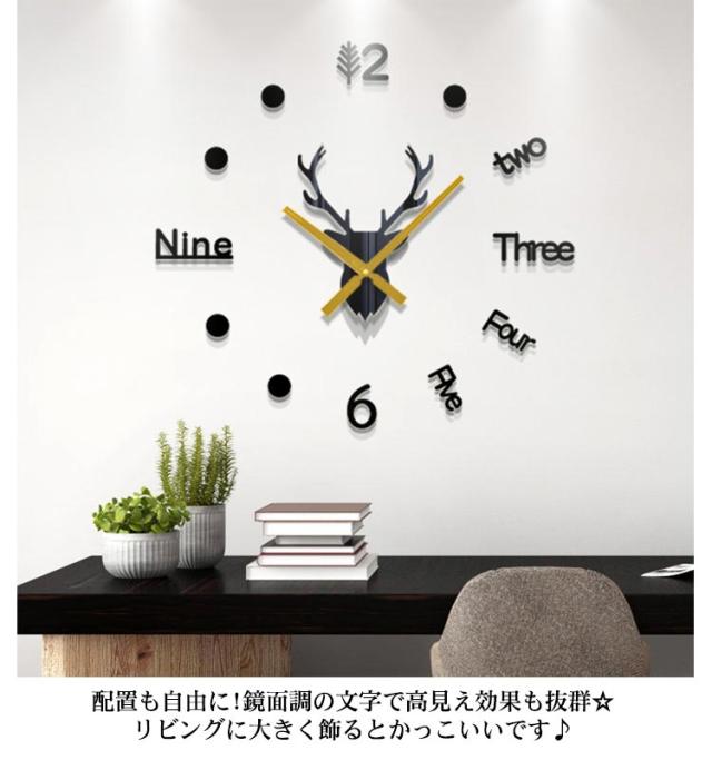 ウォールアート ウォールクロック 時計 静音 モダン 壁に貼る時計 鹿 DIY 特大 リビング 超大きいサイズ 文字 数字 ブラック 貼れる 壁 事務室 貼る 時計 クロック オフィス 店舗 壁紙 ステッカー