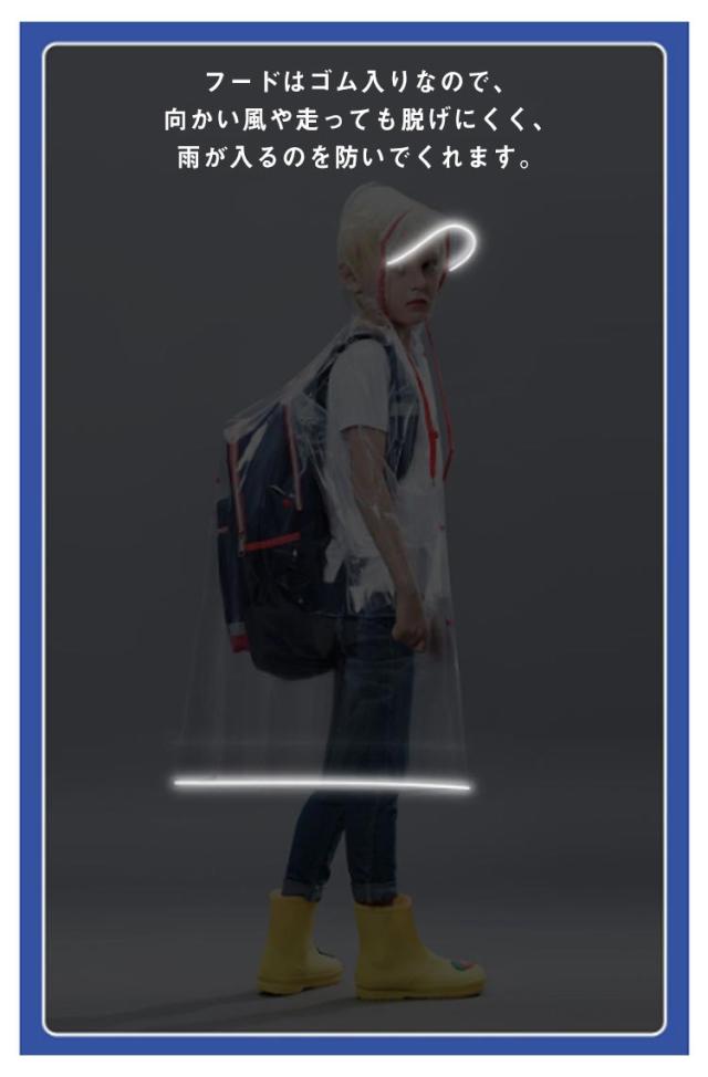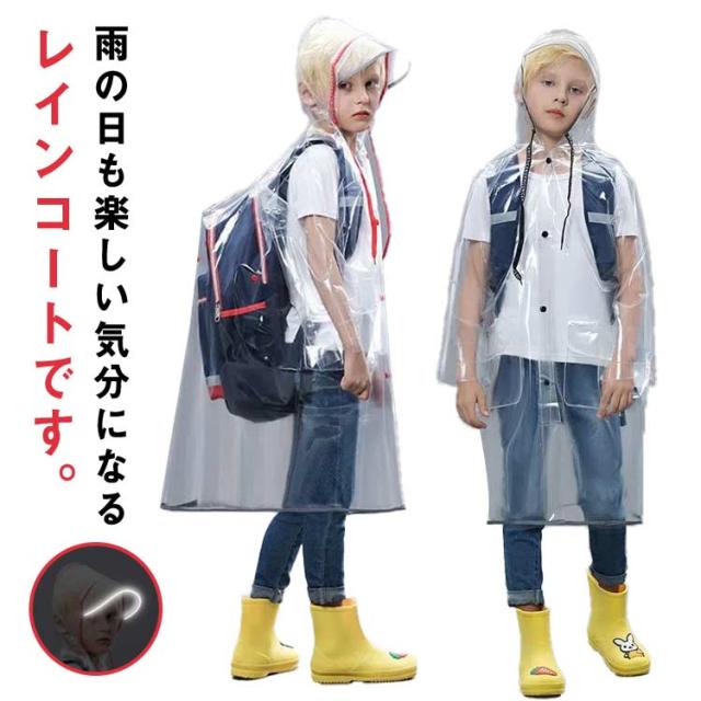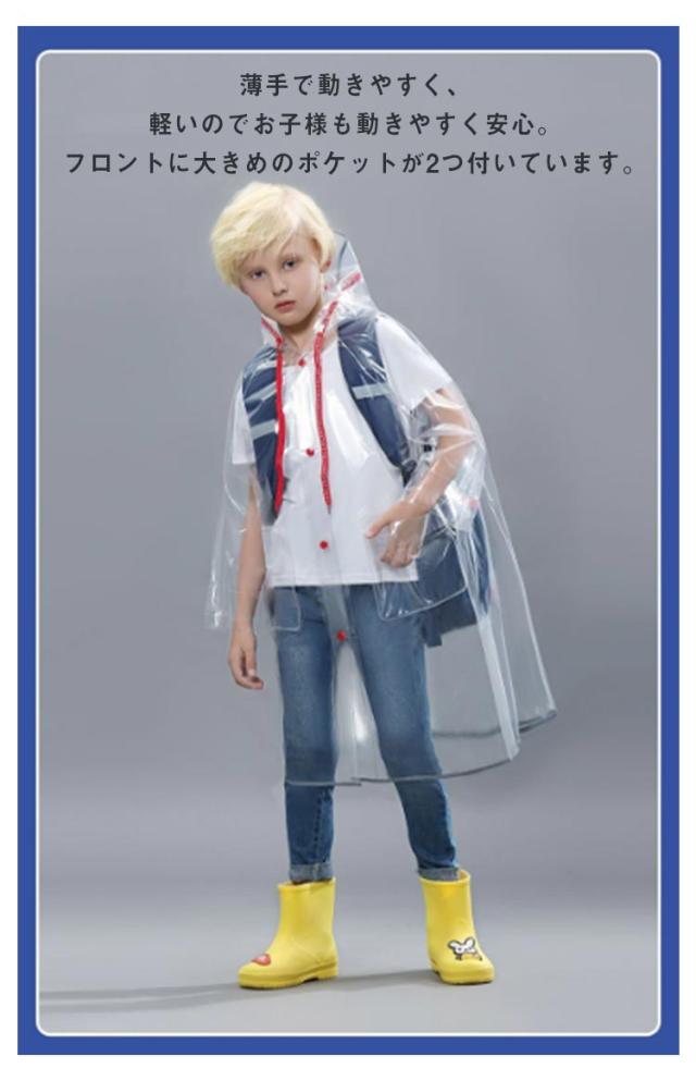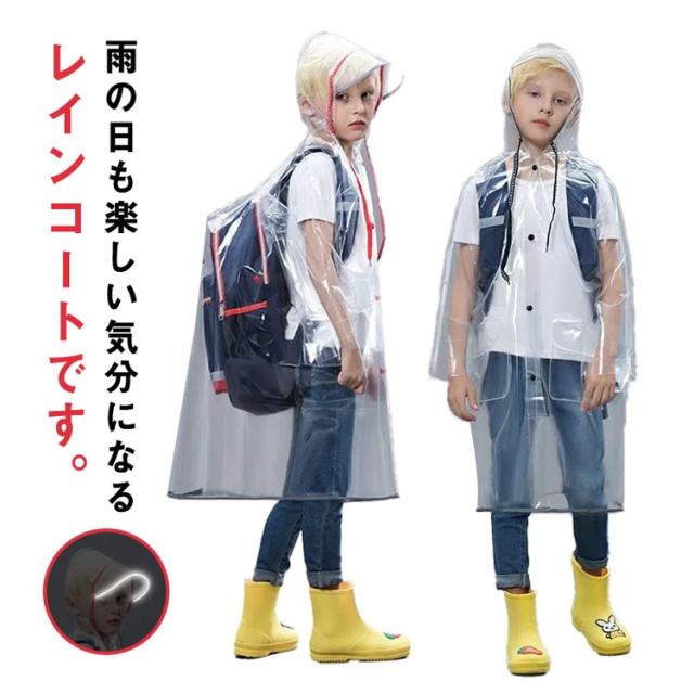 | 雨の日も楽しい気分になるレインコートです。 透明になっているので、雨の日の視界の悪い日もクリアに周囲を見る事ができます。 薄手で動きやすく、軽いのでお子様も動きやすく安心。フロントに大きめのポケットが2つ付いています。 リュックやランドセルを背負ったまま着用でき、雨の日の通学や通園に大活躍! フードはゴム入りなので、向かい風や走っても脱げにくく、雨が入るのを防いでくれます。 持ち運びに便利な収納袋が付いてます。 | |