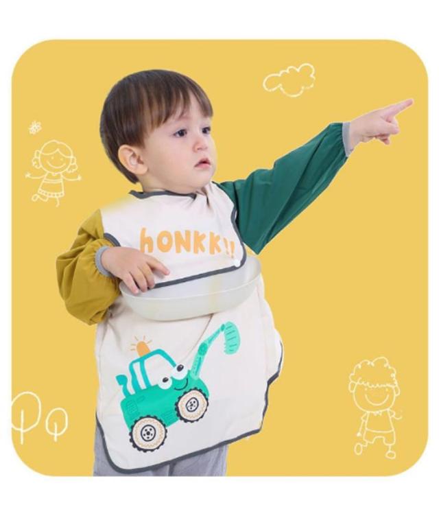 ロングエプロン お絵かき ベビー スモック 食事用 ロングエプロン 防水 ベビー用エプロン スタイ ポケット付き お食事エプロン 食べこぼしガード 送料無料 保育園 幼稚園 エプロン 離乳食 ベビー用品 お食事スタイ 0歳 1歳 2歳 長袖