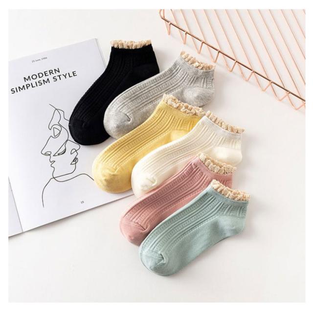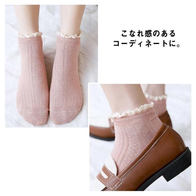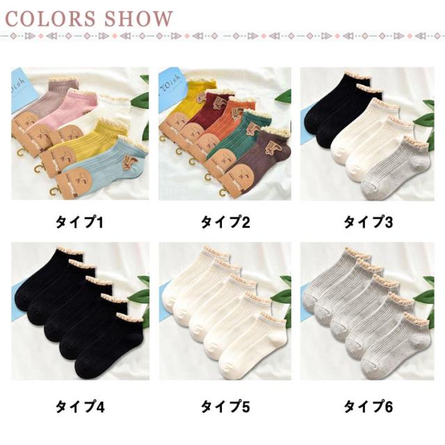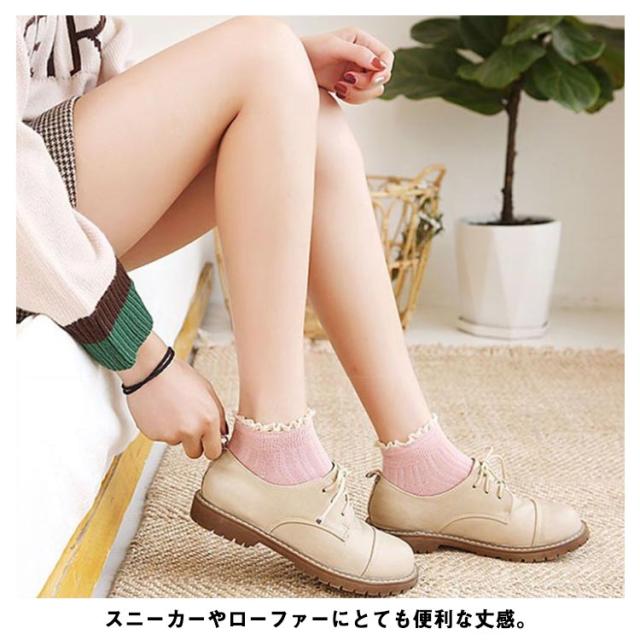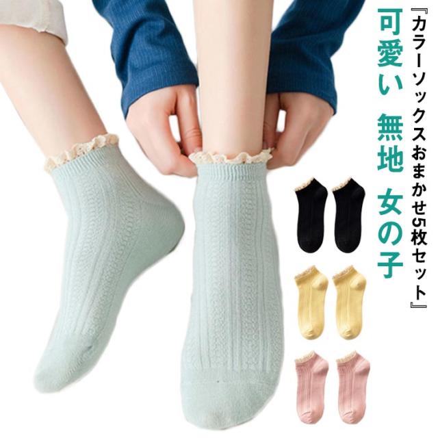 送料無料 5足セット 靴下 プレゼント 可愛い 無地 かわいい ショート丈 ショートソックス 女の子 シンプル フリーサイズ ソックス フリル付き 女子高生 シンプル カジュアル ナチュラル レディース