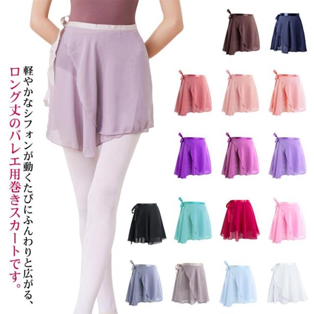 子供 バレエスカート ミニヨン 大人 バレエ ジュニア バレエ用品 ラップスカート レディース レッスン スカート 大人巻きスカート 着 ウェア 黒 シフォン 練習 M 柔らか 可愛い 調節紐 S 全19色