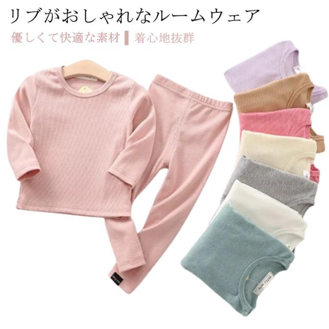 レディース 長袖 セットアップ 女の子 綿 リブが可愛いキッズパジャマ キッズ 男の子 上下セット 春 メンズ パジャマ 80cm 寝巻 100cm 110cm 120cm 130cm 韓国 風 ルームウェア 子供 上下セット おしゃれ 子供服 薄手 90cm