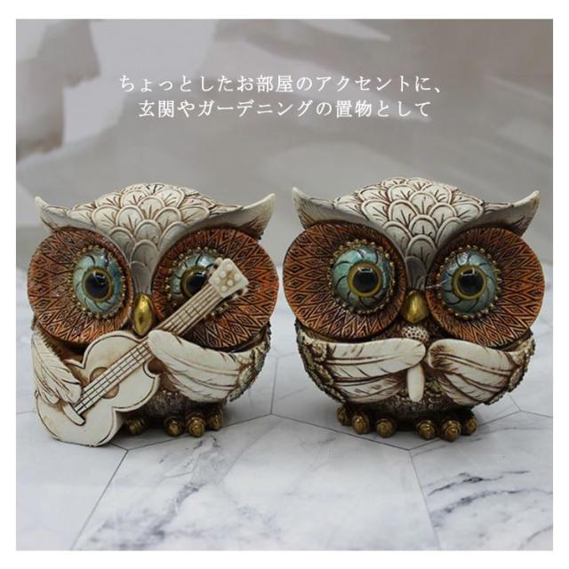 | かわいいバンドフクロウの4点セット ふくろうの仕草、表情など、良く作られていて雰囲気抜群です。 ちょっとしたお部屋のアクセントに、玄関やガーデニングの置物として 細部まで拘った作りで本物趣向の方にも満足出来る世界を演出しています。 | |