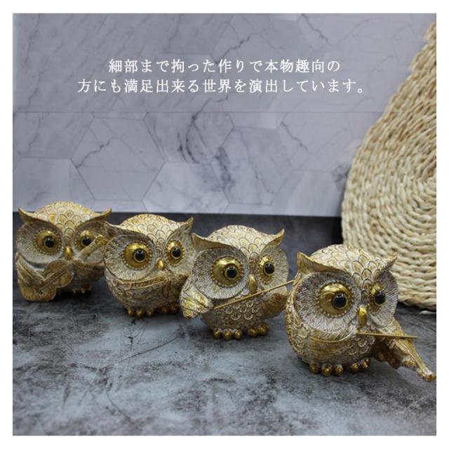 縁起 送料無料 庭 ふくろう フクロウの置物 置物 風水 不苦労 オーナメント 玄関 ディスプレイ 縁起物 装飾 ガーデニング フクロウ ガーデン ベランダ オブジェ ガーデン 屋外 高級感 雑貨 北欧 母の日 父の日 4点セット