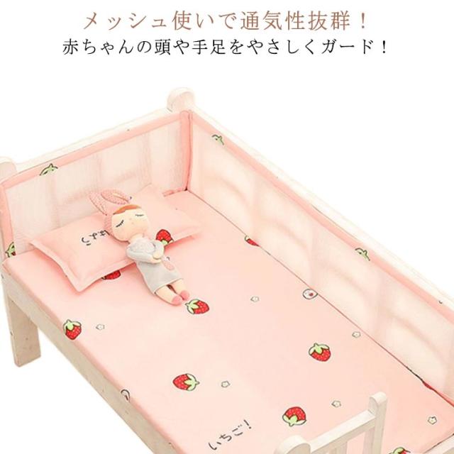 1歳 ベッドベッドガード ベッドバンパー サイドガード メッシュ 綿 転落防止 ベッドバンパー ベビーベッド用 ガード ごっつん防止 0歳 寝返り対策 ケガ防止 空気循環可能 子供 新生児 出産準備 ベビー 可愛い 通気性 無地 アニマル柄 星柄 イチゴ柄 赤ちゃん