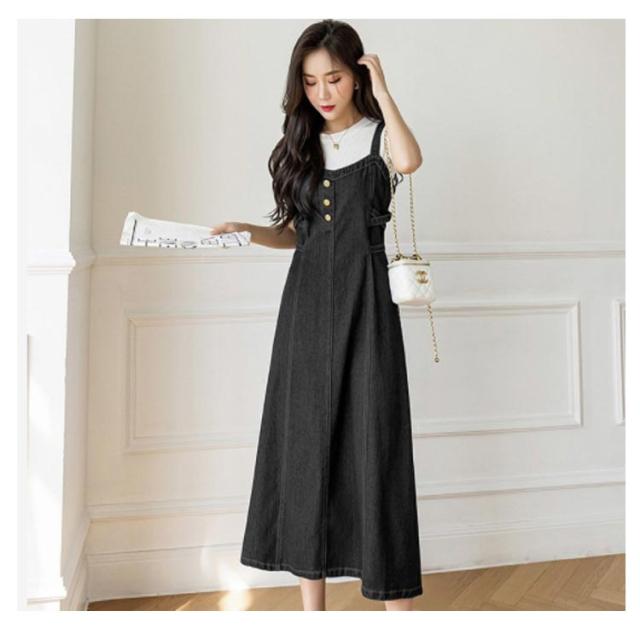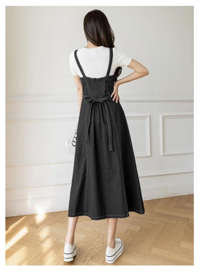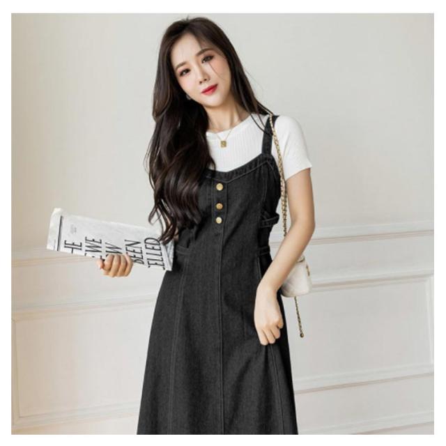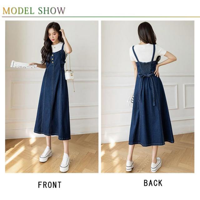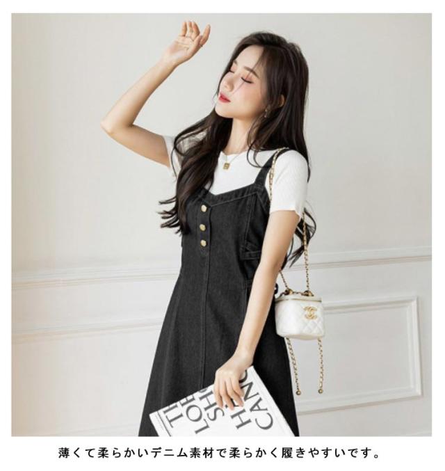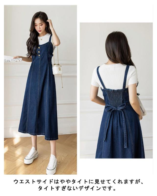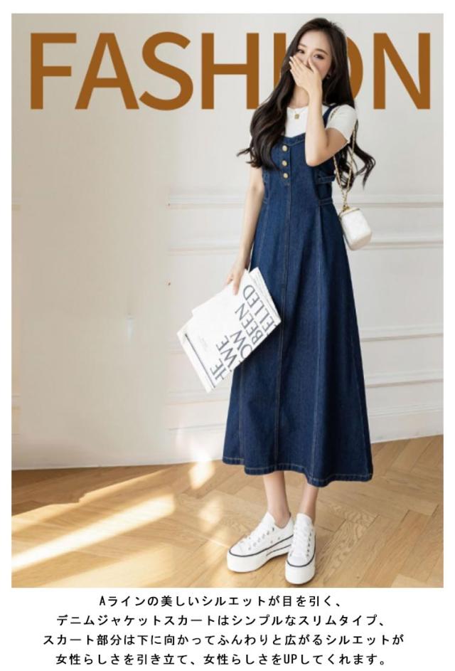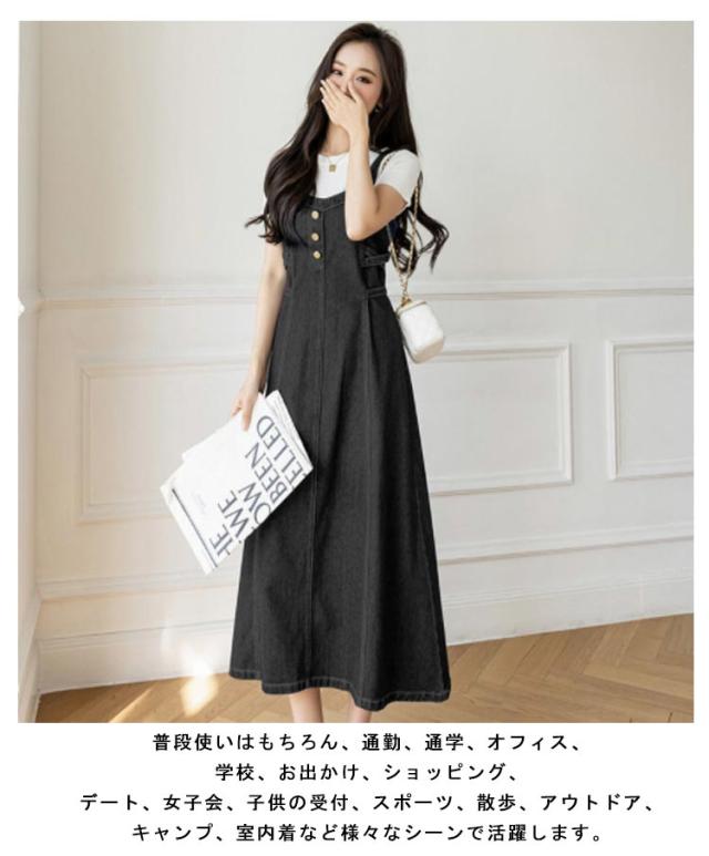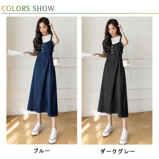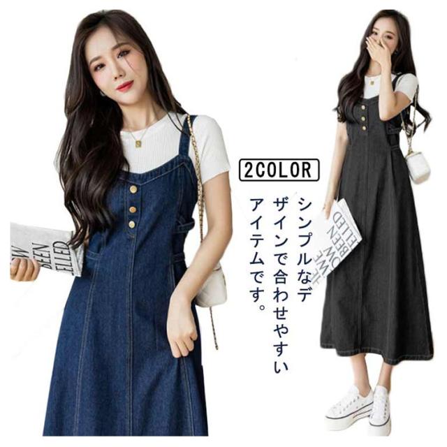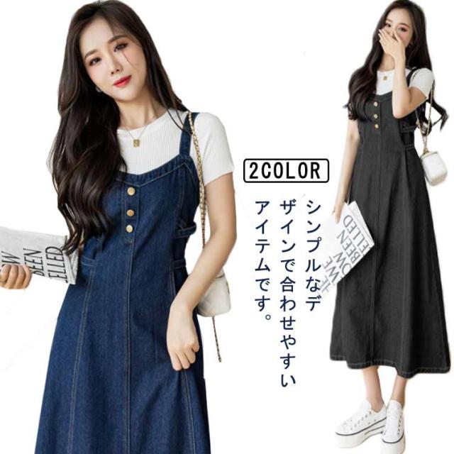 ジャンパースカート 春 2色展開 Aライン デニム レディース サロペットスカート 夏 秋 シンプル 大きいサイズ ノースリーブ カジュアル オールインワン ゆったり ロング