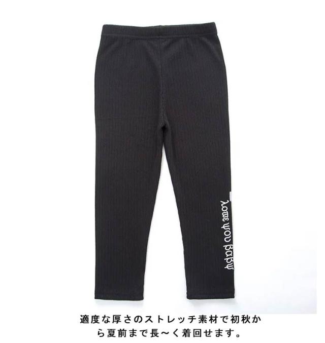 | 可愛いキッズレギンス。 肌ざわり柔らかな綿生地で、子供の敏感な肌にやさしいです。 縫製もしっかりで丁寧で、元気に動きまわるお子様にもご安心頂きます。 ウエストは、ゴム入りで伸縮性があります。 体によくフィットして履くだけで簡単! 適度な厚さのストレッチ素材で初秋から夏前まで長〜く着回せます。 | |