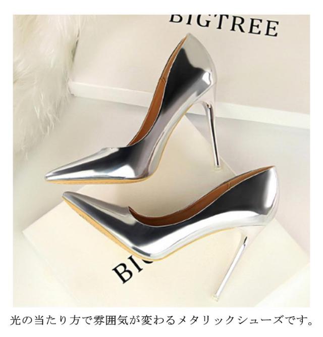 ハイヒール メタリック パンプス 結婚式 レディース シューズ ポインテッドトゥ 大人可愛い 7cm ピンヒール 靴 ツヤ 光沢 ピンヒール 痛くない 美脚 大きいサイズ 華やか おしゃれ パーティー 発表会 披露宴 10cm
