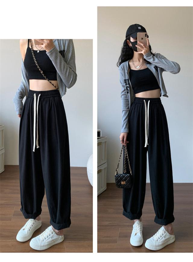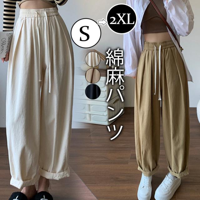 綿麻パンツ レディース サルエルパンツ テーパードパンツ 春服 無地 ハイウエスト ワイドパンツ ボトムス カジュアル ゆったり