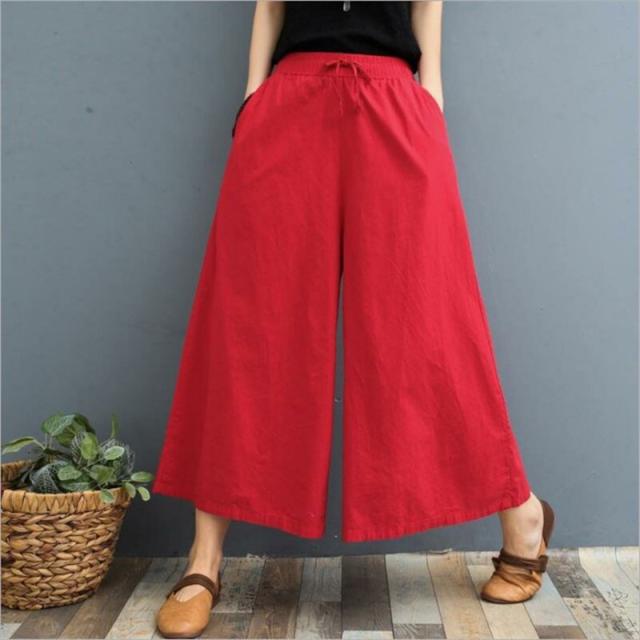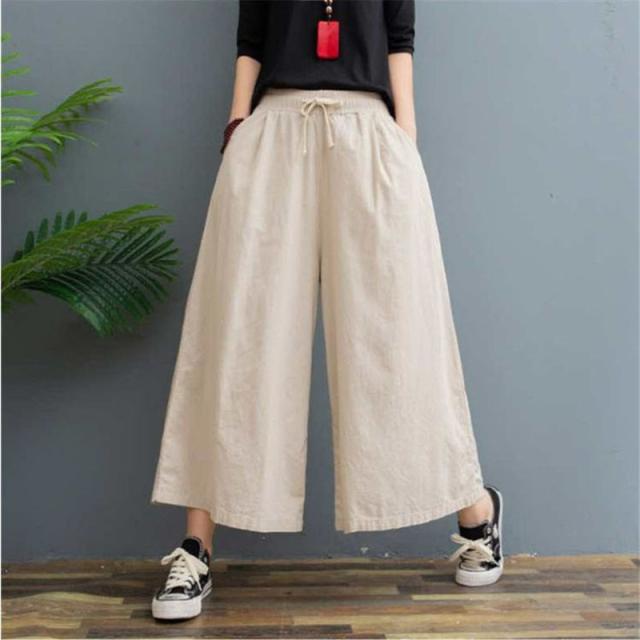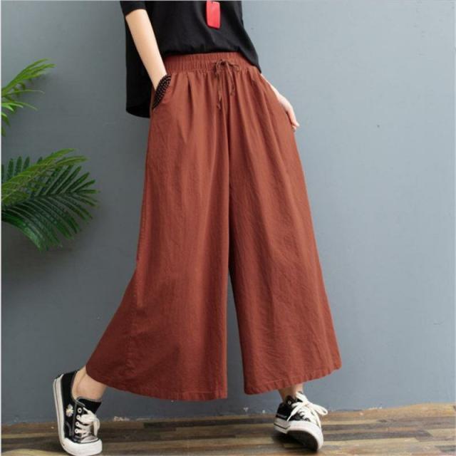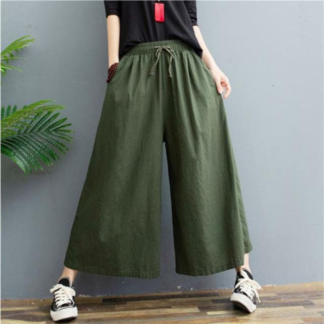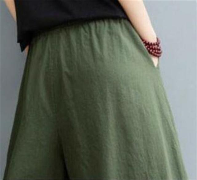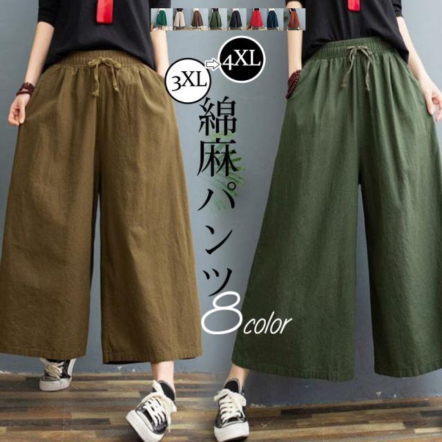 激安 綿麻パンツ レディース ガチョウパンツ ワイドパンツ ハイウエスト 無地 八分丈 ボトムス カジュアル ゆったり 着痩せ お
