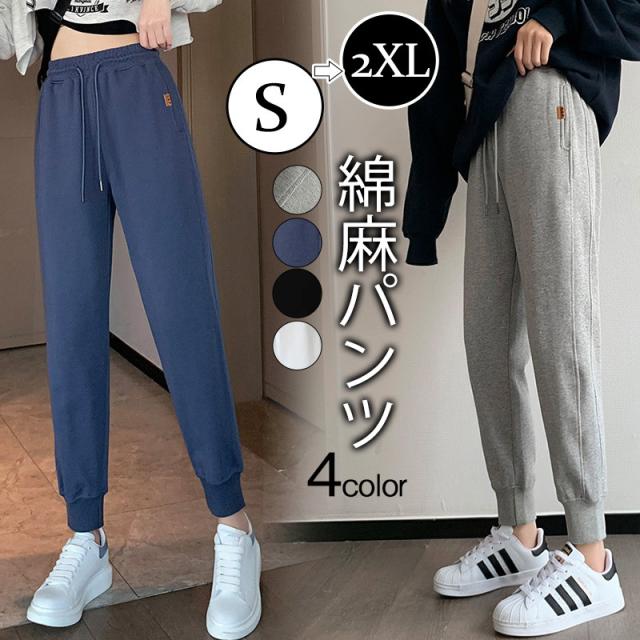 サルエルパンツ レディース テーパードパンツ 綿麻パンツ 春服 無地 スポーツ ワイドパンツ ボトムス カジュアル ゆったり 薄手