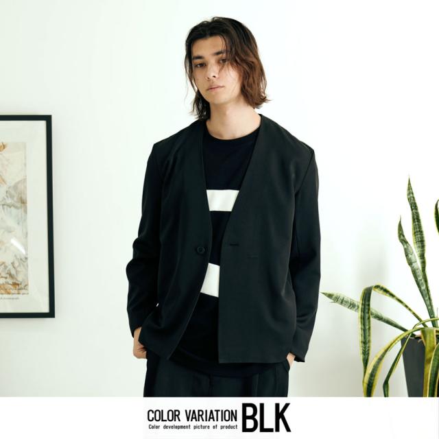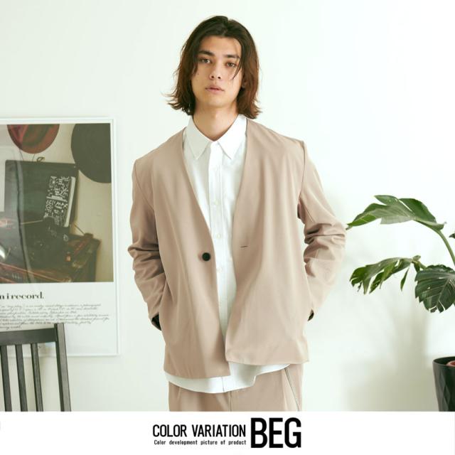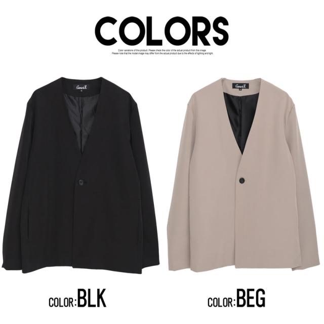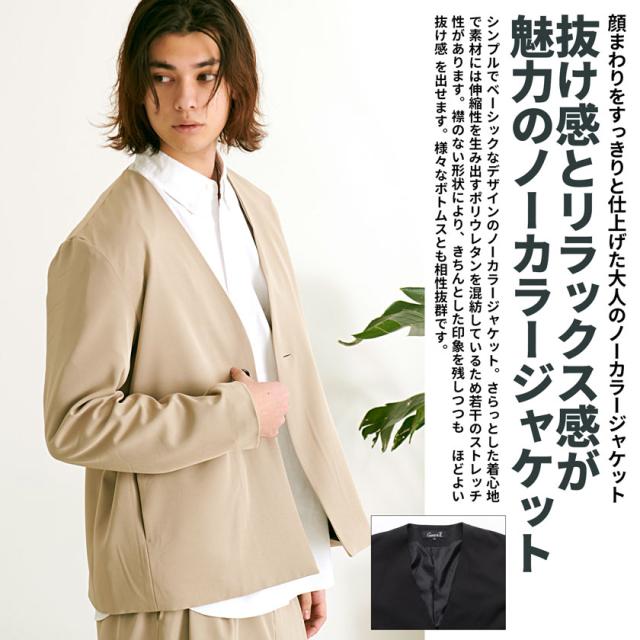 ノーカラージャケット メンズ テーラードジャケット アウター ジャケット ブランド おしゃれ 大人 カジュアル ジャケット アウター ノーカラー シンプル 無地 春 秋 ブラック ベージュ 黒 M L CavariA 20代 30代 40代 メンズファッション 即日発送 [CARI23-05]