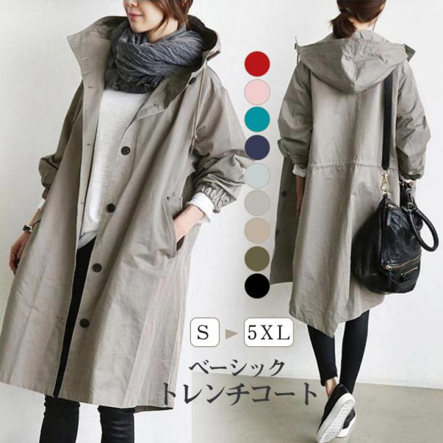 トレンチコート レディース フード付きバーカー ロング丈ジャケット スプリングコート 春コート ライトアウター 秋服 韓国風 30