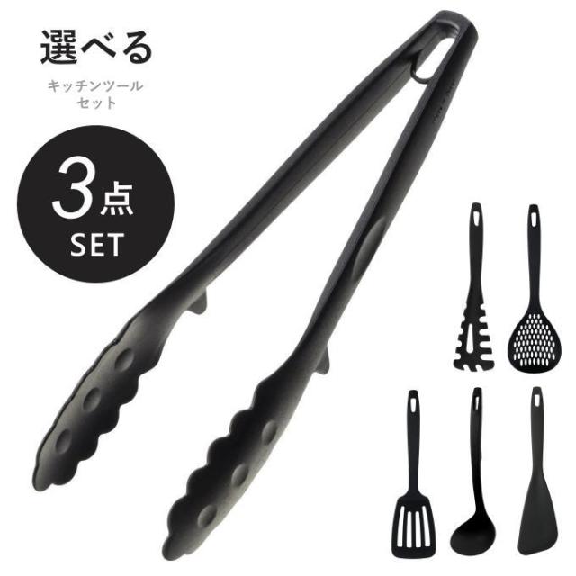 選べる キッチンツール セット 調理器具 福袋 お得 お試し ナイロン キッチンセット 調理道具 食洗機対応 一人暮らし お玉 ターナー フライ返し トング ヘラ 便利 ひとり暮らし 初心者 新社会人 大学生 新生活 KT-3点-select
