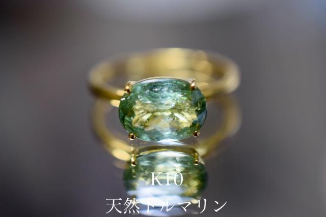 k10-2 現品 11.0号 k10金 大粒 天然トルマリン 深緑 リング 指輪