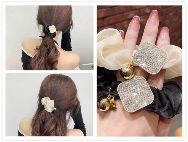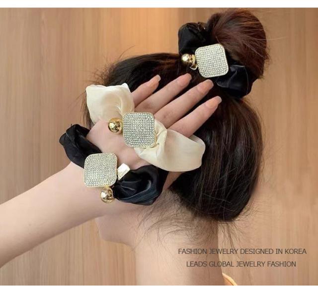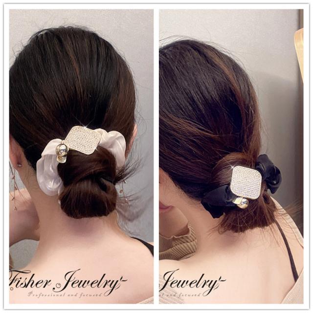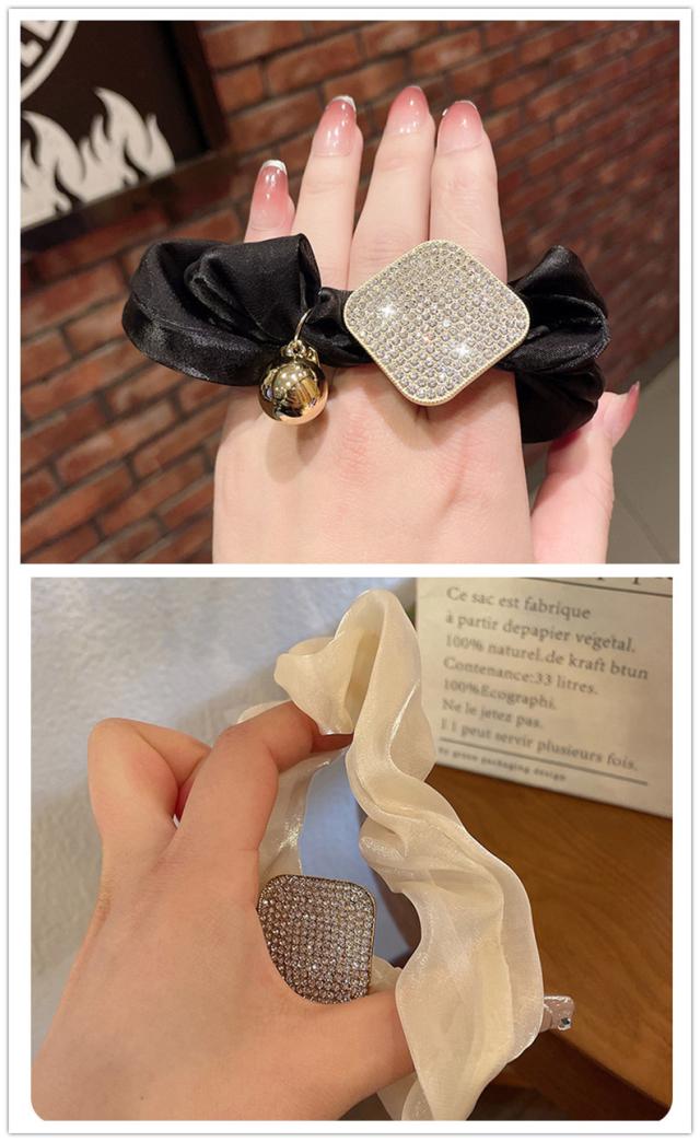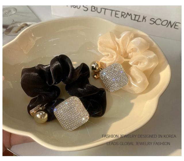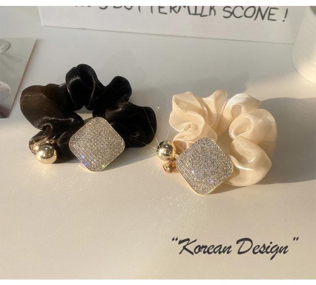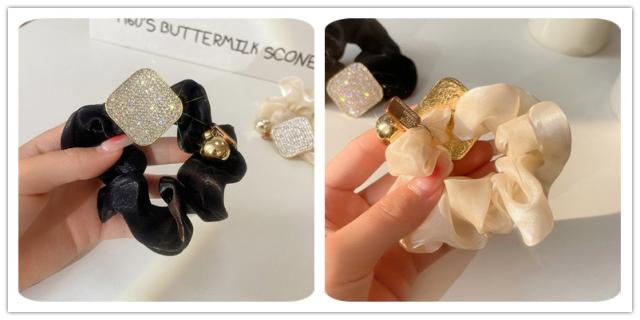 しわ加工のCZダイヤプレート付きシュシュヘアゴム♪