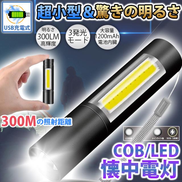 懐中電灯 高輝度 LEDライト Xpe T6 COB 300ルーメン ミニ 小型 軽量 強力ハンディ フラッシュライト 多機能 防災 防犯 停電 明るい 登山 自転車 台風 地震