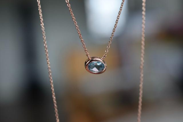 NK07 細工製作 宝石質 天然 薄青 水色 アクアマリン色 トパーズ topaz 覆輪留 ネックレス 金属アレルギー対応 18KGP ピンクゴールド お祝い お正月 プレゼント ご褒美 誕生石