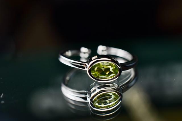 RG04 天然 細工製作 宝石質 天然 碧の宝石 ペリドット 太陽の石 覆輪留 リング 指輪 ホワイトゴールド シルバーカラー フリーサイズ 18KGP 金属アレルギー対応 プレゼント お祝い