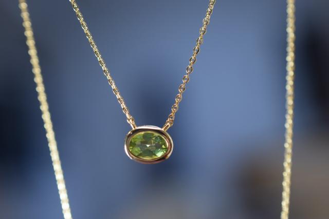 NK06 細工製作 宝石質 天然 碧の宝石 ペリドット 太陽の石 覆輪留 ネックレス 金属アレルギー対応 18KGP イエローゴールド お祝い お正月 プレゼント ご褒美 誕生石
