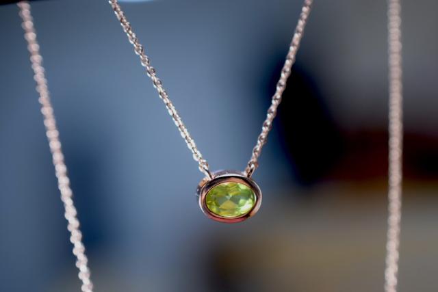 NK06 細工製作 宝石質 天然 碧の宝石 ペリドット 太陽の石 覆輪留 ネックレス 金属アレルギー対応 18KGP ピンクゴールド お祝い お正月 プレゼント ご褒美 誕生石