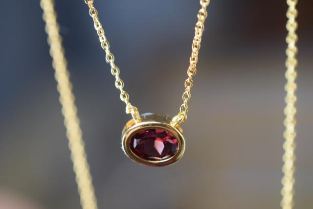 NK05 細工製作 宝石質 天然 ガーネット 柘榴石 覆輪留 ネックレス 金属アレルギー対応 18KGP イエローゴールド お祝い お正月 プレゼント ご褒美 誕生石