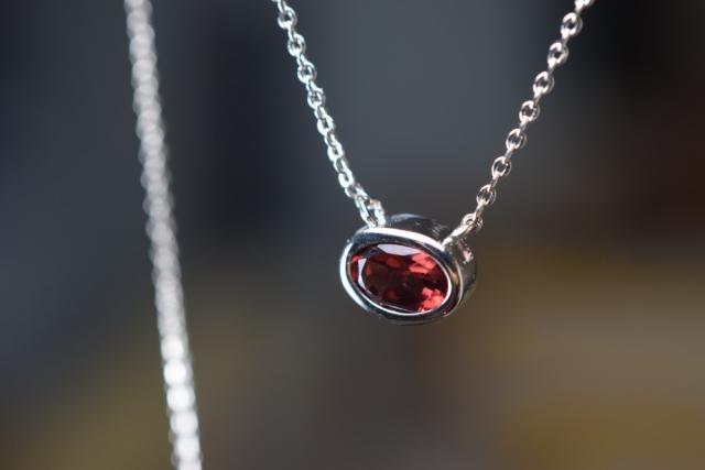 NK05 細工製作 宝石質 天然 ガーネット 柘榴石 覆輪留 ネックレス 金属アレルギー対応 18KGP ホワイトゴールド シルバー系 お祝い お正月 プレゼント ご褒美 誕生石