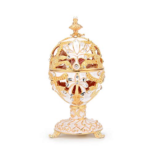 QIFU ファベルジェエッグスタイル 手描き 装飾小物ボックス ヒンジ付き クラシックオーナメント