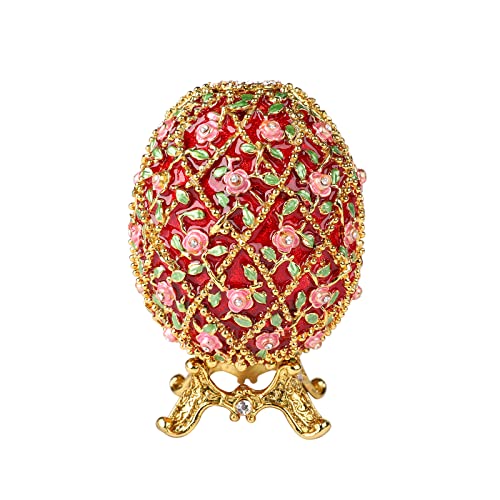 QIFU ヴィンテージ レッド ファベルジェ エッグ フィギュア 手描き エナメル 小物入れ ヒンジ付き 家族へのユニークなギフト…