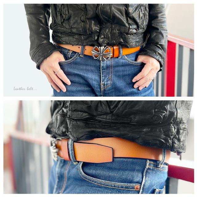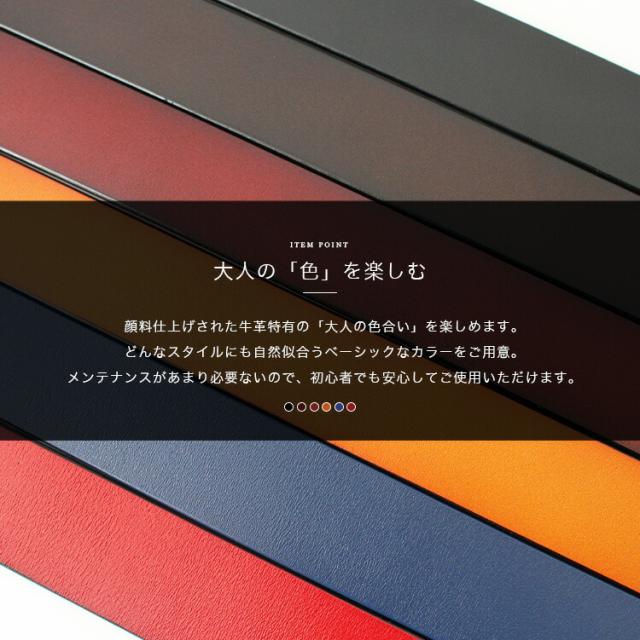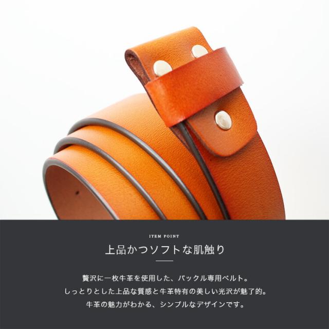 顔料仕上げの牛革を使用して製作したレザーベルトです。ネジ式でバックルが留められるようになっているのでお好みのバックルを付けて使用することができます。※ピン型バックルを取り付ける場合は縦型の穴空けが必要です。