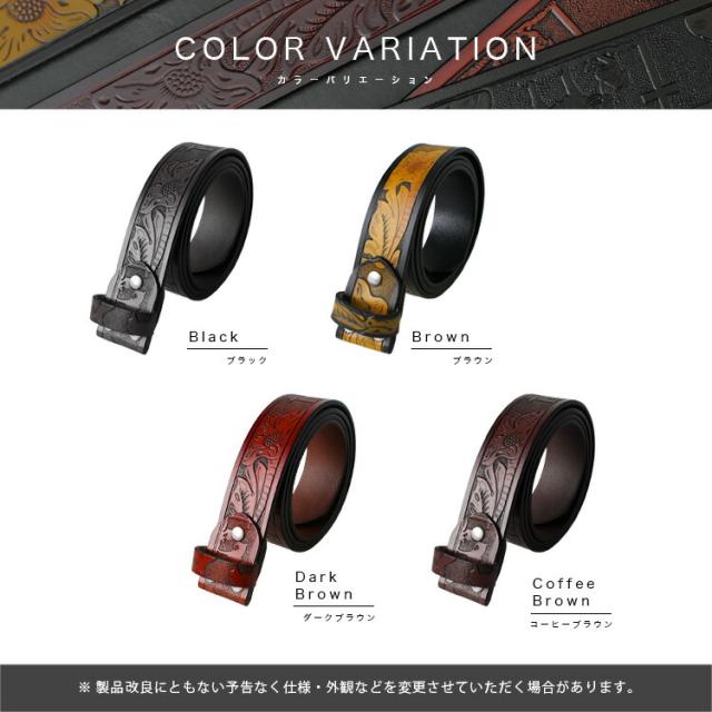 レザーベルト メンズ 牛革 カービングベルト ベルトのみ バックル別売り メンズベルト ネジ留め ツートンカラー バイカラー ブラック ブラウン ダークブラウン コーヒーブラウン 130cm 大きいサイズ ab-bt023