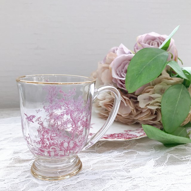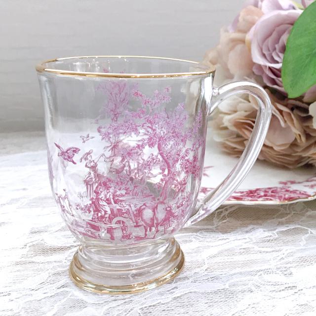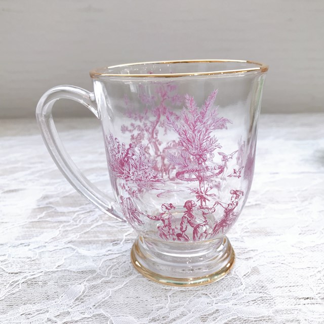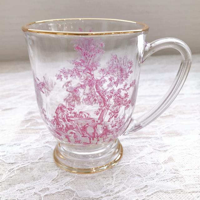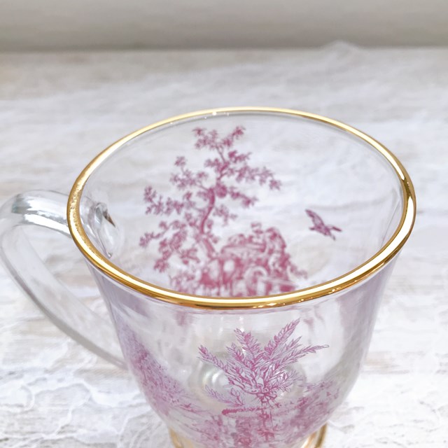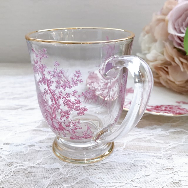 【ハルモニア】トワルドジュイ ボルドー ガラスマグカップ(R) 800041【ティーカップ アンティーク 花柄 硝子 アフタヌーンティー ヌン活 バレンタイン ホワイトデー 母の日 父の日 敬老の日 クリスマス xmas】