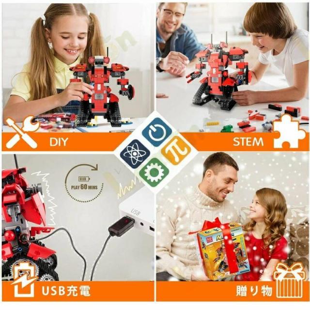 ブロック建築ロボット リモコン操作 知育玩具 子ども用 工学科学教育 建築おもちゃキット 男の子 女の子 ギフト 6歳以上 レッド