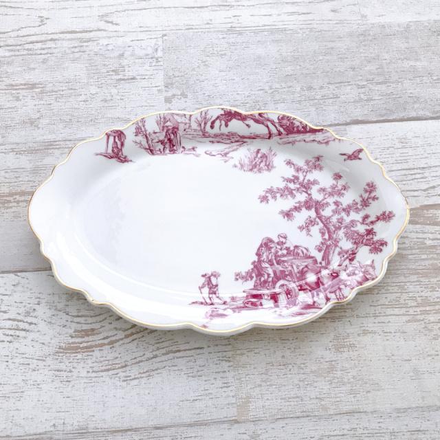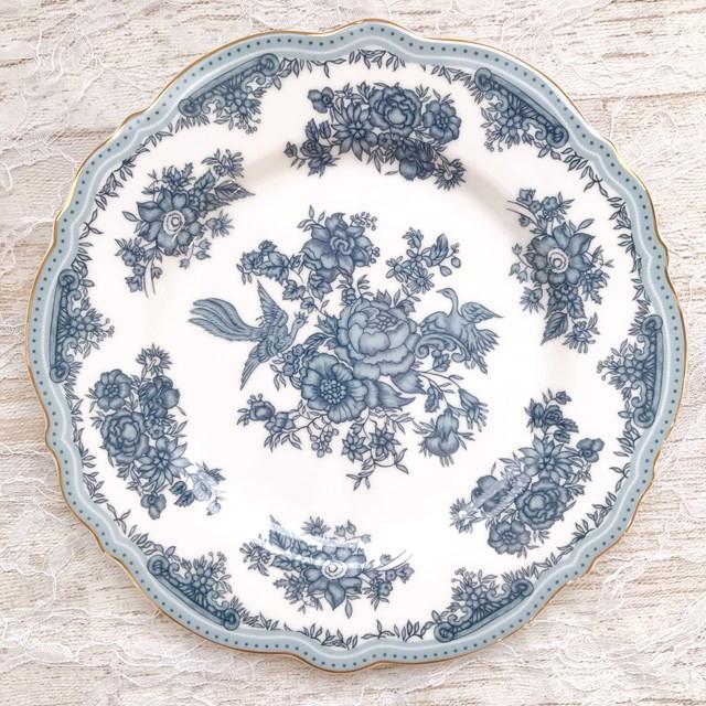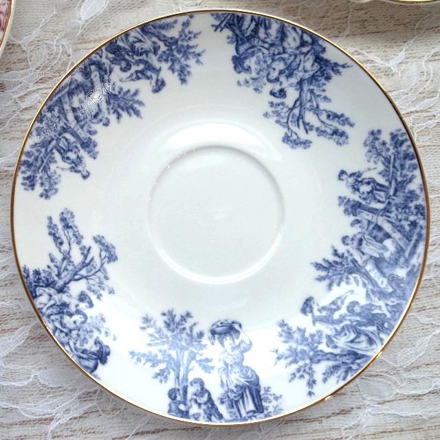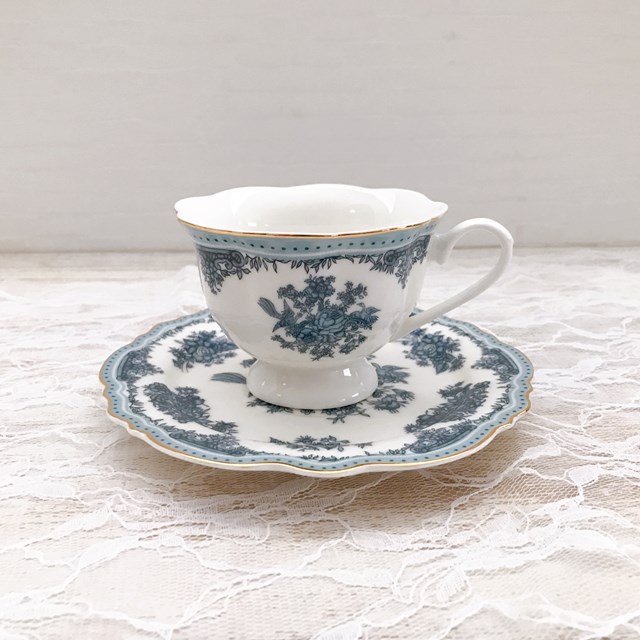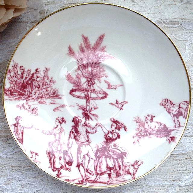 陶器製のソーサーも絵柄が施された華やかなデザインで、ケーキプレートとして使えます。