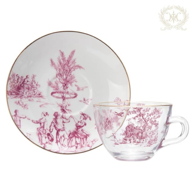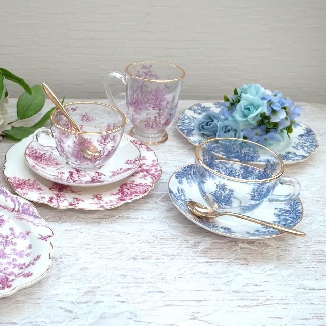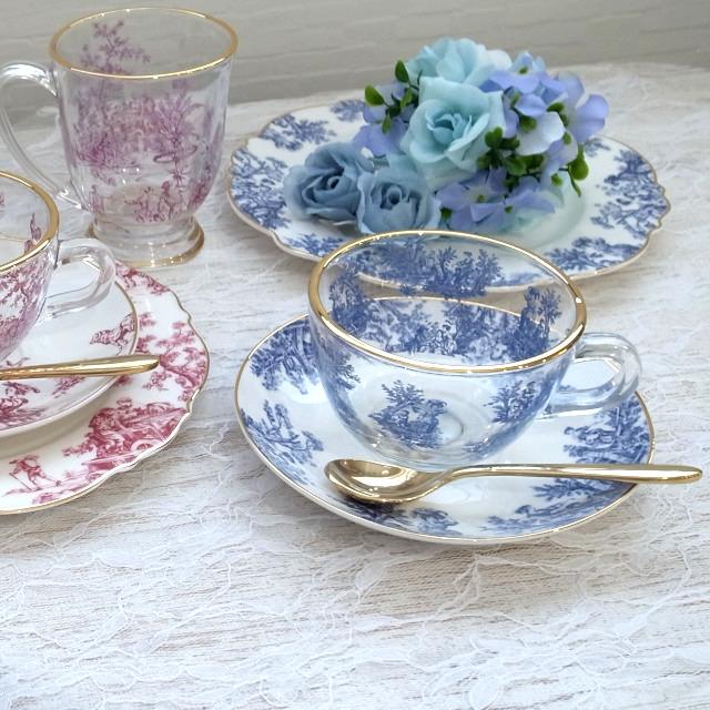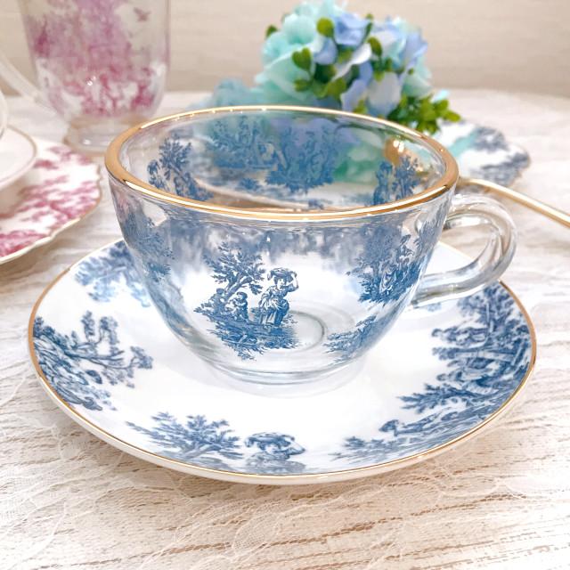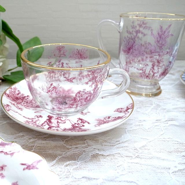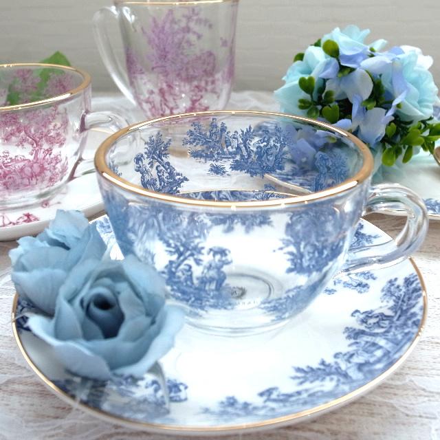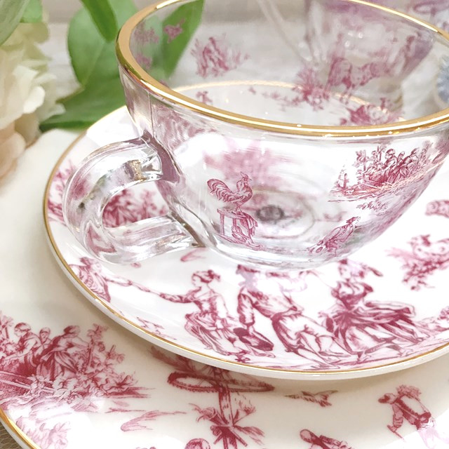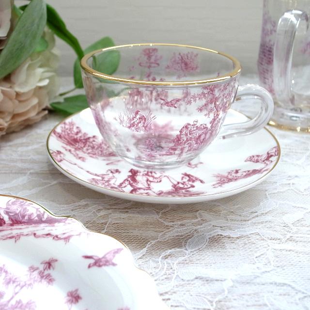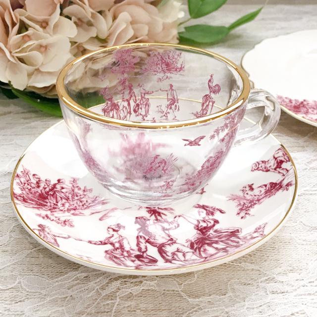 【ハルモニア】トワルドジュイ ガラスカップ&ソーサー (R) 800037 800040【ティーカップ アンティーク セット 花柄 硝子 アフタヌーンティー ヌン活 バレンタイン ホワイトデー 母の日 父の日 敬老の日 クリスマス xmas】