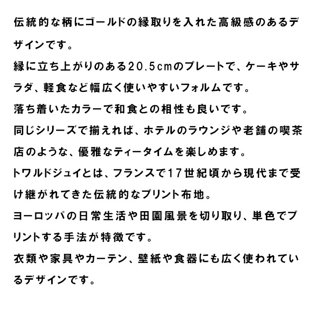 【ハルモニア】トワルドジュイ ラウンドプレート 20.5cm (R) 800035 800038【プレート お皿 食器 アンティーク セット 花柄 アフタヌーンティー ヌン活 バレンタイン ホワイトデー 母の日 父の日 敬老の日 クリスマス xmas】