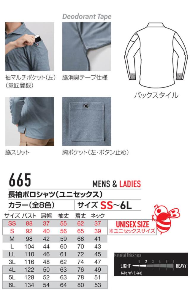 BURTLE バートル 長袖ポロシャツ(ユニセックス) 665 ストレッチ 消臭 オールシーズン SS〜4L