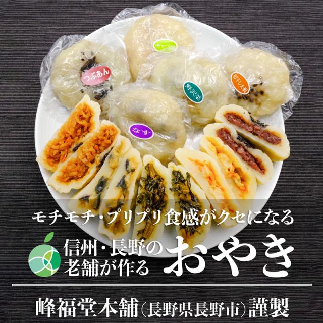 おやき 5種 各1個 5個セット 野沢菜 なす 切り干し大根 キャベツ つぶあん 長野県産 老舗 峰福堂 冷凍食品 ギフト 贈り物 プレゼント