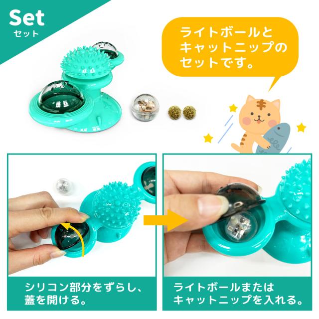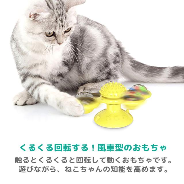【くるくる回転する!風車型のおもちゃ】触るとくるくると回転して動くおもちゃです。遊びながら、ねこちゃんの知能を高めます。