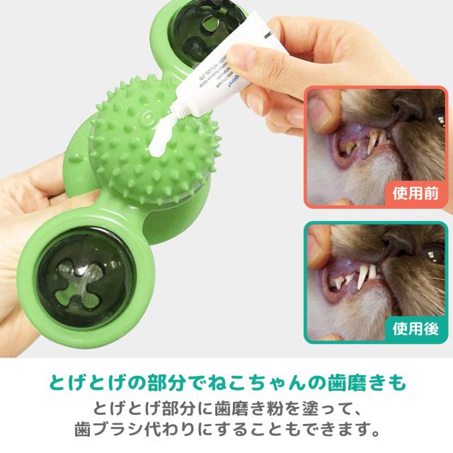 【とげとげの部分でねこちゃんの歯磨きも】とげとげ部分に歯磨き粉を塗って、歯ブラシ代わりにすることもできます。