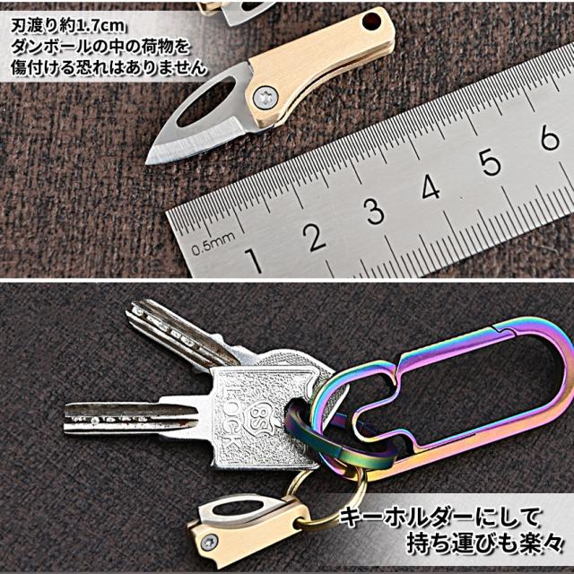 超小型 ダンボール カッター ナイフ 1.7cm 段ボール ミニ 刃 開梱 開封 手紙 レター オープナー 封筒 キーホルダー コンパクト プレゼント 真鍮 ステンレス 刃物 便利 文房具 文具 雑貨 CHOMINIFU 送料無料