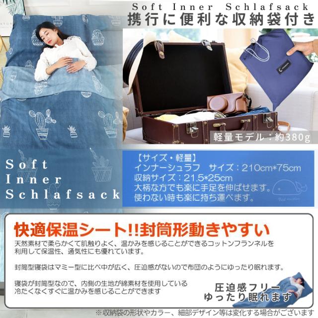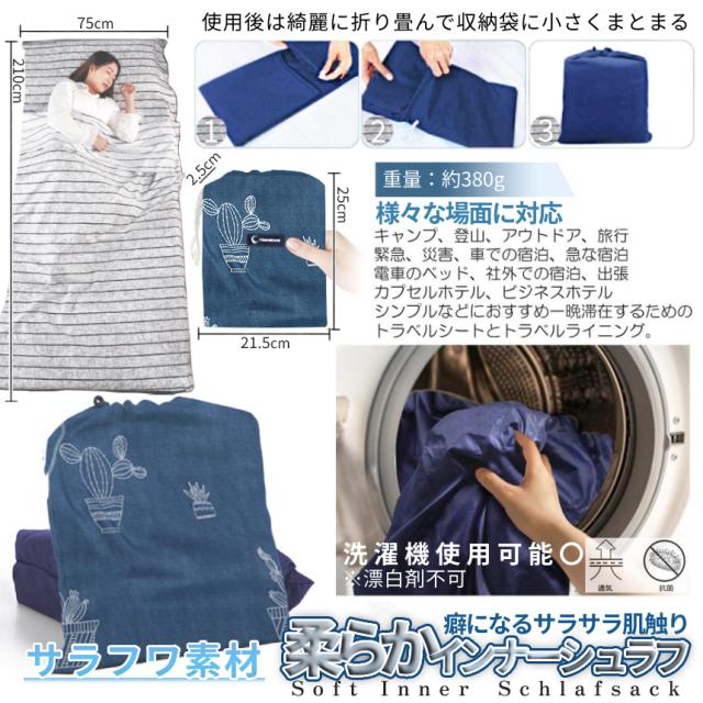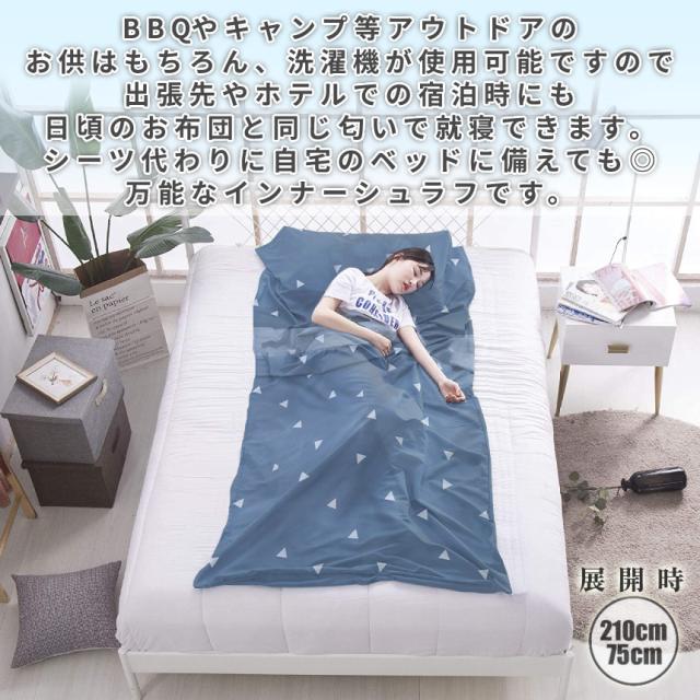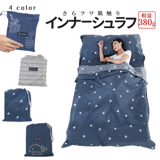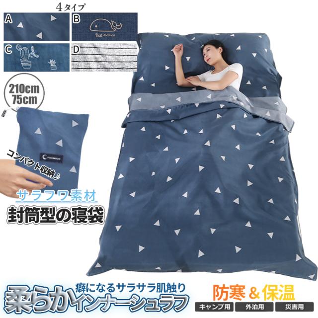 さらさら インナーシュラフ 210×75cm 寝袋 封筒型 アウトドア インナー シェラフ 洗濯 可能 肌触り 抜群 コットン トラベル シーツ 防寒 保温 快適 軽量 アウトドア 寝具 旅行 列車 車中泊 キャンプ 暖 緊急 収納袋付き SARASHE 送料無料